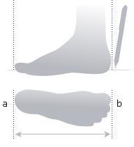 Messen Sie die jeweils Länge und Breite Ihrer Füße, wie auf den beiden Abbildungen angezeigt.